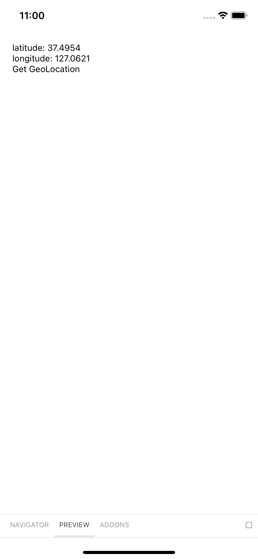 권한 허용을 해준 다음, 다시 누르시면 현재 위도와 경도가 화면에 표시됩니다.