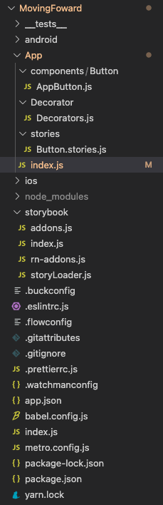 프로젝트 폴더의 index.js 대신 컴포넌트와 스크린이 추가되어 있는 App폴더를 생성하고 거기에 index.js 파일을 만들어 주어 그 파일을 통해 프로젝트를 실행시켜주었습니다.